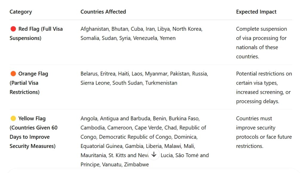 If these proposed restrictions are enacted, individuals from Red Flag countries may face complete visa ineligibility, meaning they will not be able to apply for a U.S. visa until the policy changes. Those from Orange Flag countries may experience delays, additional scrutiny, or a suspension of specific visa types (such as work or student visas). Yellow Flag countries have a short window to make adjustments to their security measures before potential restrictions take effect.